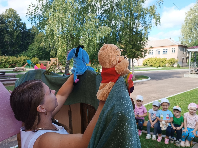 15 августа в младшей группе прошёл "урок вежливости", да не просто урок, а самый настоящий кукольный театр по стихотворению С.Я. Маршака "Урок вежливости". Дети всегда с удовольствием поддерживают любую взрослую инициативу и с радостью включаются в процесс. Им важно помочь герою, если тот попал в беду, и вместе радоваться, когда выход найден. Во время представления мы с детьми наблюдали конфликт между Осликом и Мишкой, который разрешился благоприятно для всех. Повторили "вежливые" слова, а также узнали, что есть обидные слова, которые нежелательны в использовании и могут ранить собеседника. Детям, как всегда, было весело и интересно, и пусть этот день им запомнится как маленький праздник лета.
