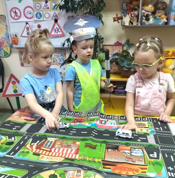 Малыши отгадывали загадки, играли в дидактические и сюжетно – ролевые игры, закрепили знания ПДД и с большим удовольствием выполнили аппликацию «Полицейская машина». Особый интерес вызвала сюжетно-ролевая игра «Кража в магазине», в ходе которой малыши не только закрепили навыки безопасного поведения на улице и дома, но смогли примерить на себя разные социальные роли: покупатели-свидетели, продавец, сотрудники полиции.