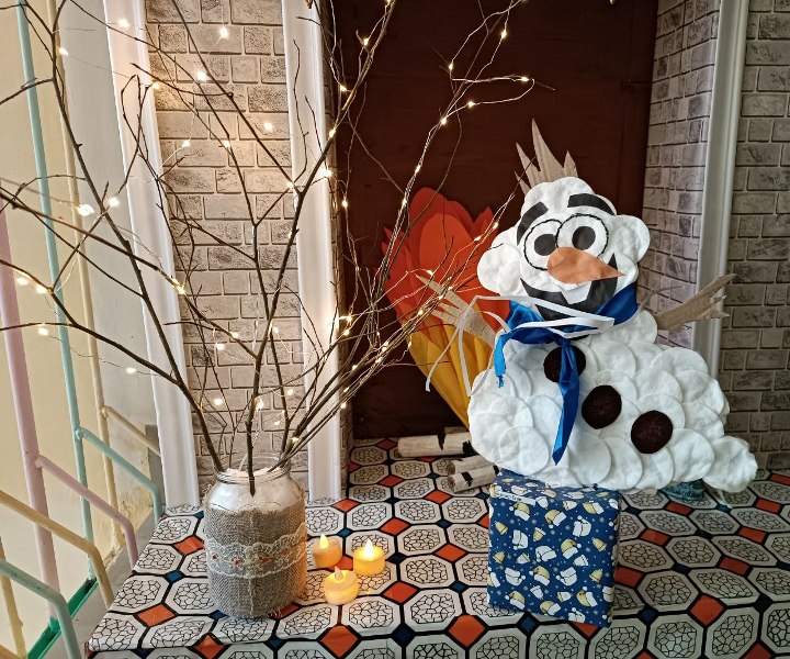 Традиционно, в канун Нового Года, в нашем детском саду проходит выставка совместных творческих работ детей и их родителей "Новогодний серпантин". На ней представлены поистине необыкновенные сказочные творения, которые изготавливались из разнообразных материалов. Благодаря стараниям семей наших воспитанников и педагогов детский сад наполнен духом приближающегося праздника. На лестничных пролетах второго этажа организованы новогодние фотозоны, которые не только создают праздничное настроение, но и помогут сделать Вам красивые новогодние фото на память.