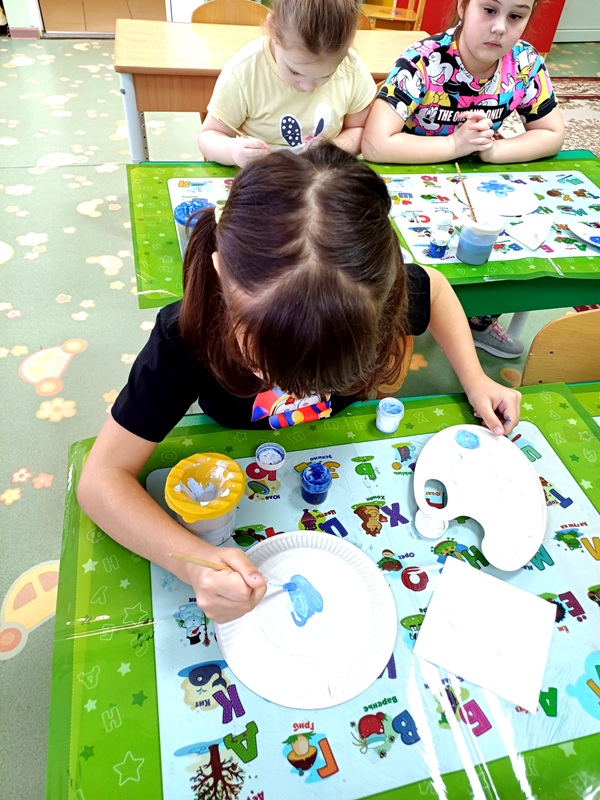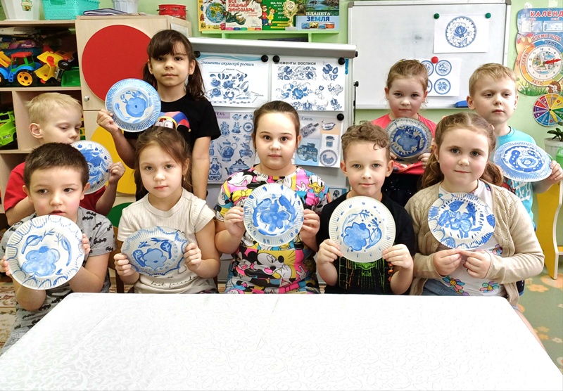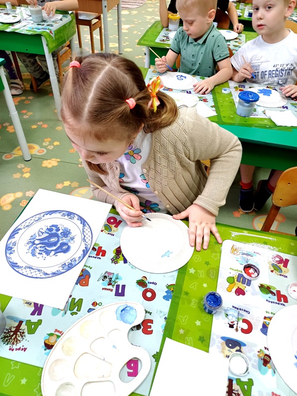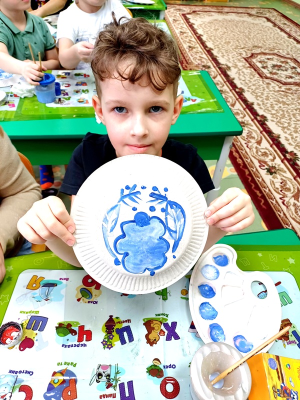 Затем воспитанники группы с удовольствием примерили на себя роль гжельских мастеров и разрисовали тарелки. Стараниями детей на заготовках появились необыкновенно красивые и нежные цветы.