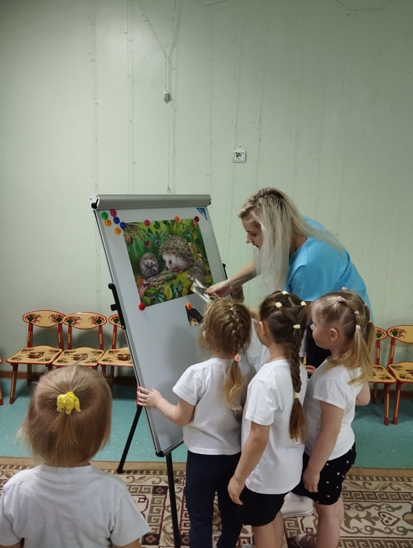 В честь этого праздника во второй младшей группе весело и познавательно прошла квест-игра «В гости к Ежику». Воспитанники второй младшей группы №6 нашего детского сада вместе с воспитателем Григорьевой Ю.Ю. отправились в увлекательное путешествие в лес к ежу. Дети отгадывали загадки, играли в подвижные игры, вспоминали и закрепляли знания о ежах и даже искали колючего лесного жителя и его нору. После прохождения каждого задания, ребята получали конверт с пазлом и в конце собрали полную картинку с изображением ежика. В заключении увлекательного занятия, дети с большим удовольствием раскрасили нарисованных веселых ежиков красками, а радостное настроение осталось в группе на весь день!
