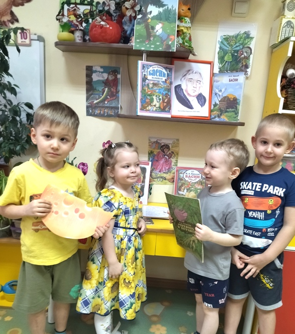 13 февраля в средней группе №3 было проведено тематическое мероприятие, посвящённое 255 – летию со дня рождения великого русского поэта - баснописца Ивана Андреевича Крылова. В книжном уголке была организована выставка «Басни дедушки Крылова». Ребята познакомились с биографией писателя и его произведениями « Ворона и лисица», «Стрекоза и муравей», с большим интересом рассматривали иллюстрации в книгах, играли в дидактические игры «Из какой басни герой», «Кто лишний». А в театральном кружке воспитанники подготовили и показали небольшой спектакль по мотивам басни «Ворона и Лисица».