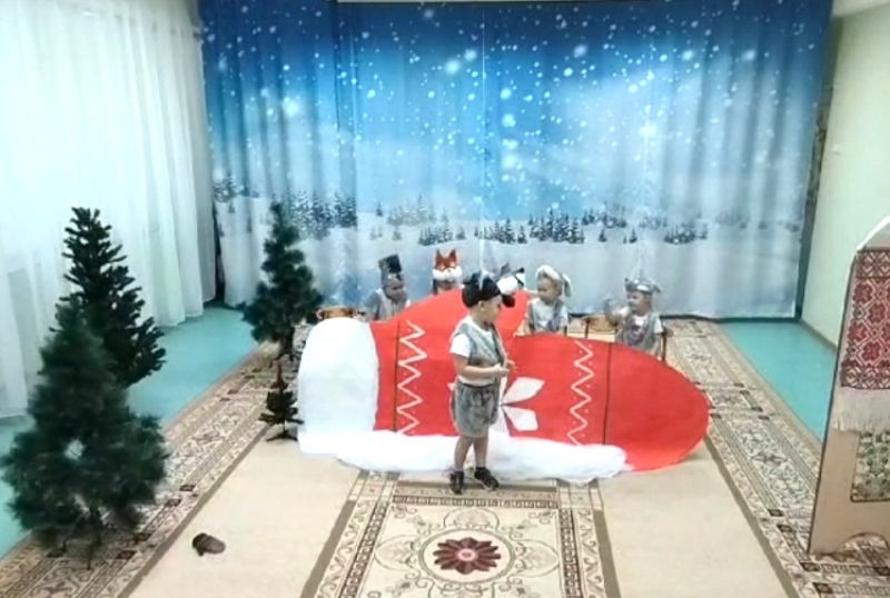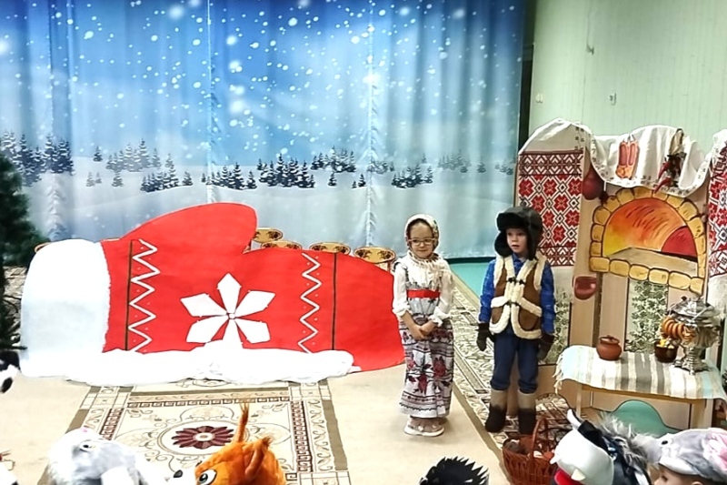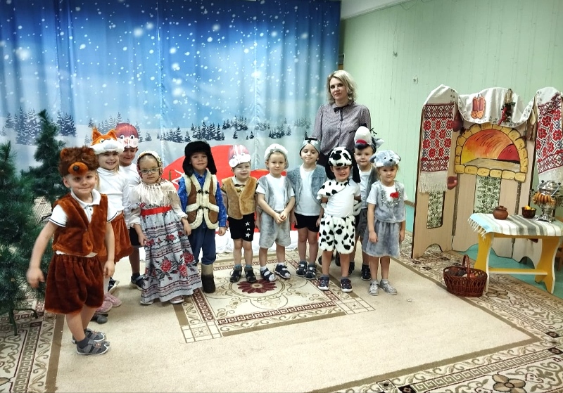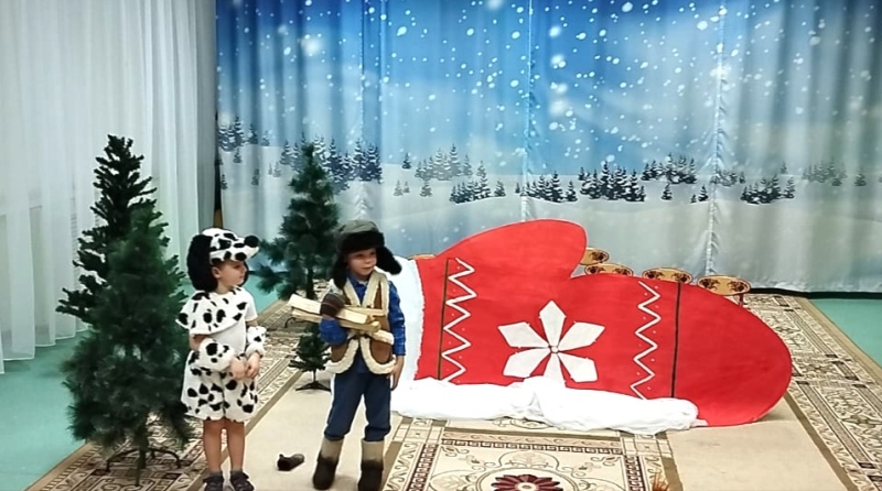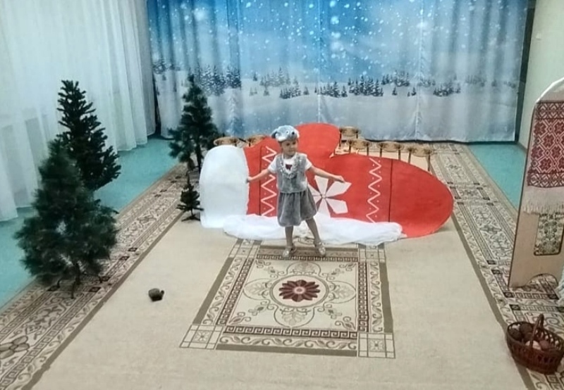В театральном кружке нашего детского сада ребята средней группы №3 под руководством педагога Кирюшкиной Ирины Дмитриевны подготовили и показали сказку «Рукавичка на новый лад». На представление были приглашены гости - воспитанники младших групп. Представление получилось интересным, ярким, оно сопровождалось играми, весёлой музыкой и танцами. Маленькие артисты очень старались, они получили удовольствие от перевоплощения в сказочных героев, а зрители оценили старания участников громкими аплодисментами.