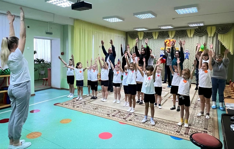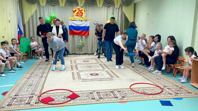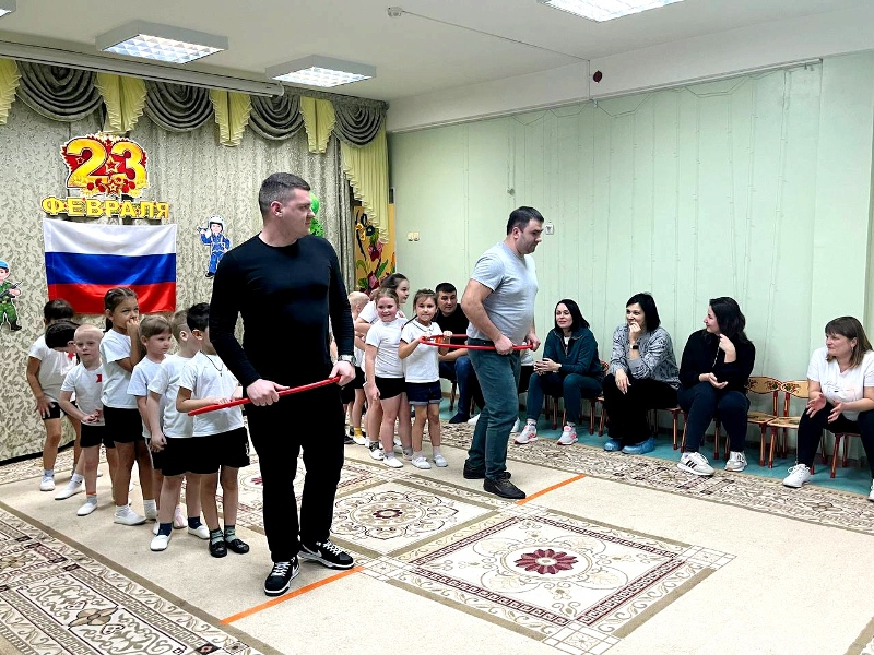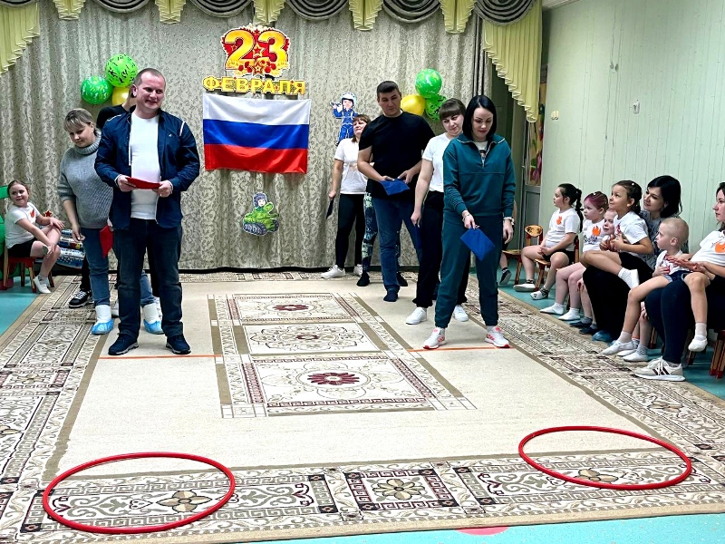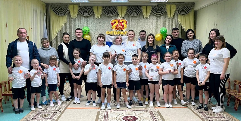 Наш детский сад принимает активное участие в акции «Крепка семья – сильна Россия», целью которой является создание условий в семье и в дошкольном учреждении для воспитания гармонично развитой и социально ответственной личности. В рамках акции, воспитатели подготовительной группы провели семейный спортивный праздник – «Сильные, ловкие, смелые», приуроченный к дню защитника Отечества. Праздник состоял из двух частей. Первая – торжественная, в которой дети рассказали поздравительные стихи для пап, исполнили песню «Будем в армии служить», танцы «Служить России» и «Разведчицы». Вторая часть праздника – спортивная, в начале которой дети и взрослые провели разминку, а потом перешли к состязаниям двух команд – «Звезда» и «Факел». Праздник проходил весело, задорно, время пролетело незаметно. По финалу стало понятно, что снова победила «дружба», дети и родители были этому рады. Мальчики были награждены памятными медалями, все дети получили сладкое вознаграждение, а пап ждал сюрприз в виде открыток, сделанных руками их детей.