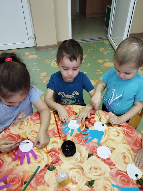 Во второй младшей группе нашего детского сада прошло тематическое занятие на тему: «Моя Семья»! Воспитатель, Григорьева Ю.Ю., провела беседу с детьми о самых близких родственниках: маме и папе, бабушке и дедушке, братьях и сестрах. Маленькие воспитанники с огромным удовольствием рассказывали о своих семьях, об их увлечениях и хобби! А так же дети узнали о ценностях семьи: любви, верности, взаимопомощи, доверии и единства! В завершении занятия воспитатель предложила ребятам создать ладошку ребенка и поместить на нее изображение члена семьи на выбор (маму, папу, бабушку или дедушку)!