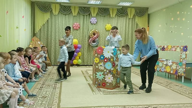Замечательный праздник, посвященный Международному женскому дню 8 марта прошёл в старшей группе №2, главными зрителями которого стали мамы и бабушки. Дети подготовили для них трогательные стихи, веселые песни, задорные танцы. А мамы и бабушки вместе с ними с удовольствием поучаствовали в смешных конкурсах. Но и сами воспитанники не остались без сюрприза. К ним на праздник в гости заходила ленивая Федора, которая ничего не умела делать. Ребята помогли ей навести порядок в доме, перебрать макароны и научили её следить за внешним видом. Праздник доставил всем много радости и приятных впечатлений. Для своих мам и бабушек, дошкольники приготовили открытки, сделанные своими руками.