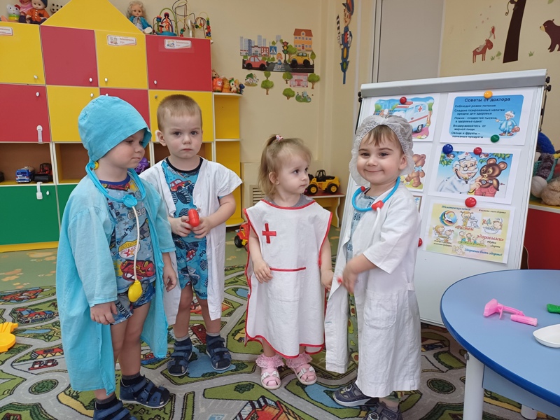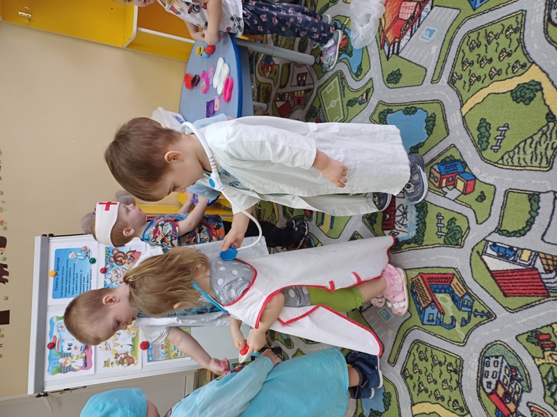 В течение «Недели здоровья» были проведены беседы с детьми: «Чистота и здоровье», «Где живут витамины», «Если хочешь быть здоров», «Кто такие микробы и где они живут?», «Солнце, воздух и вода мои лучшие друзья», «Здоровая и полезная пища для людей», «Для чего нам физкультура?». Малыши под руководством педагога Кривец И.С. играли в сюжетно-ролевые игры: «Больница», «Добрый доктор Айболит», читали детские произведения: «Как стать неболейкой», «Девочка чумазая», «Приятного аппетита», «Крепкие зубы», рассматривали иллюстрации и картинки на тему здоровья.
