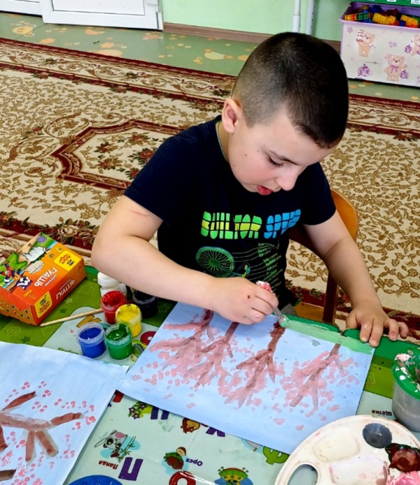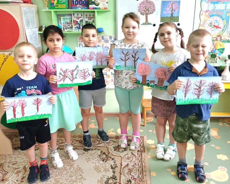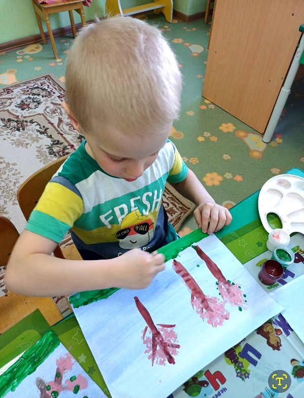 Весна - чудесное время года! Природа оживает, на деревьях распускаются зеленые листочки, а на одном из занятий кружка "Волшебные краски" уже зацвели... яблони! Создали эту красоту ребята при помощи нетрадиционной техники рисования ватными палочками.
