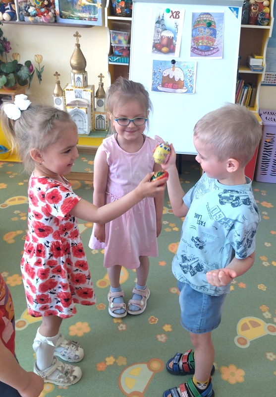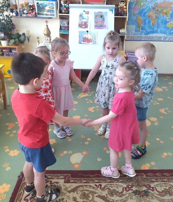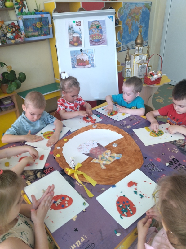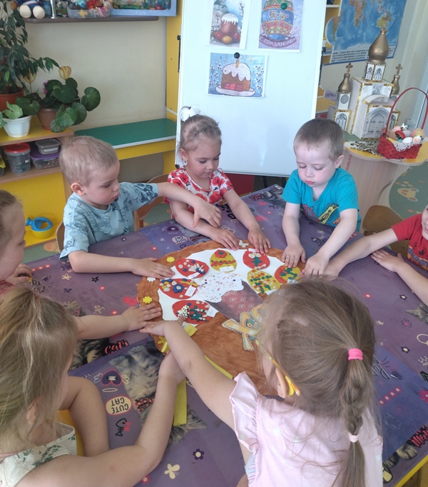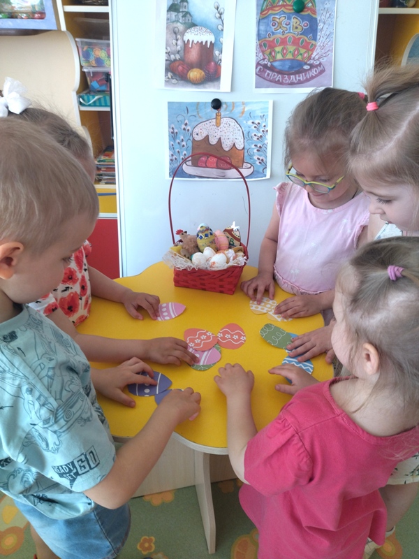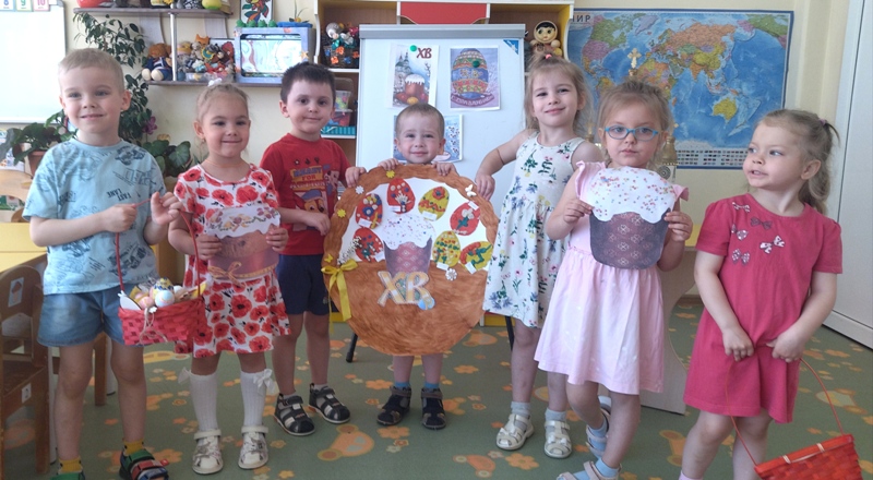 Пасха – светлый и добрый праздник, несущий много добра, любви и света. Этот Великий День и приходит к нам с ярким солнышком, ароматным куличом и крашеными яйцами. В преддверии этого дня в средней группе №3 прошло тематическое мероприятие «Пасха радость нам несёт». Ребята познакомились с историей праздника, с пасхальными традициями и обычаями, отгадывали загадки, слушали песни, читали стихи, играли в народные игры и выполнели коллективную аппликацию «Пасхальная корзинка».