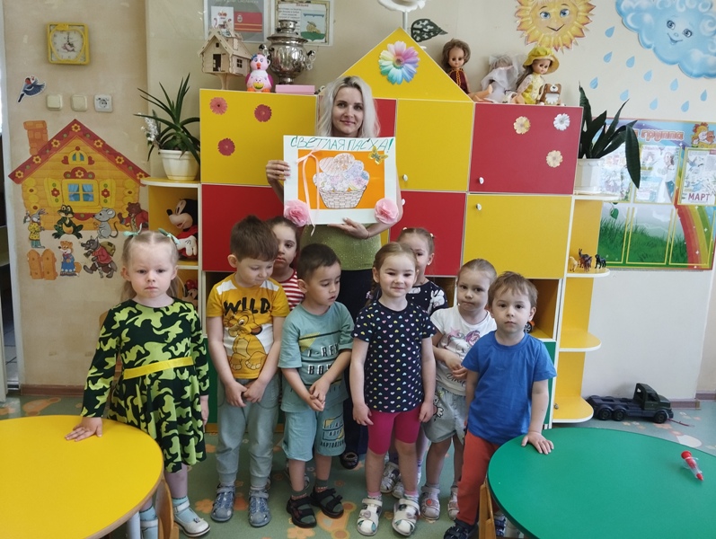 В преддверии Светлой Пасхи во второй младшей группе нашего сада прошло познавательное мероприятие "О Светлой Пасхе - детям" с целью приобщения воспитанников к истокам русской культуры и традициям. Ребята просмотрели презентацию о прекрасном празднике Пасха, познакомились с историей праздника и его символами! Итогом занятия была создана общая работа - аппликация "Пасху встречаем!", на которой дети раскрашивали яйца и приклеивали в корзину. Данное мероприятие способствует возрождению православных традиций, формирует у детей первичные представления о духовном наследии православного народа, уважение к православным праздникам.