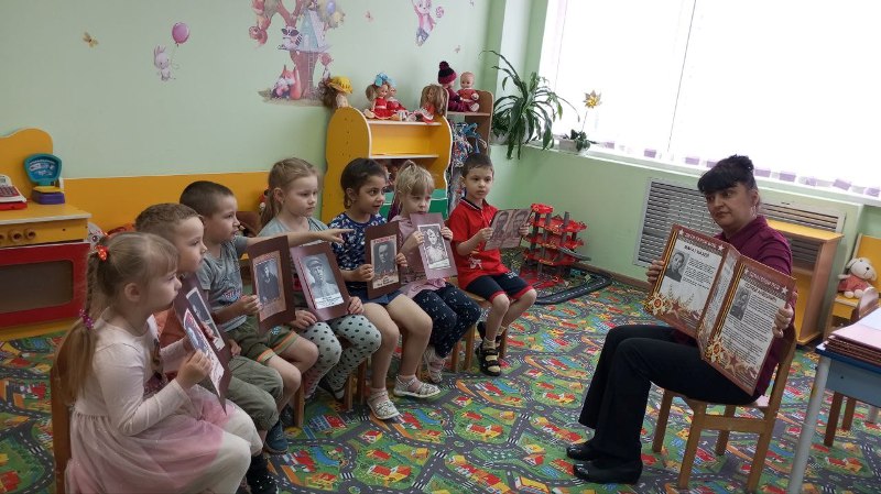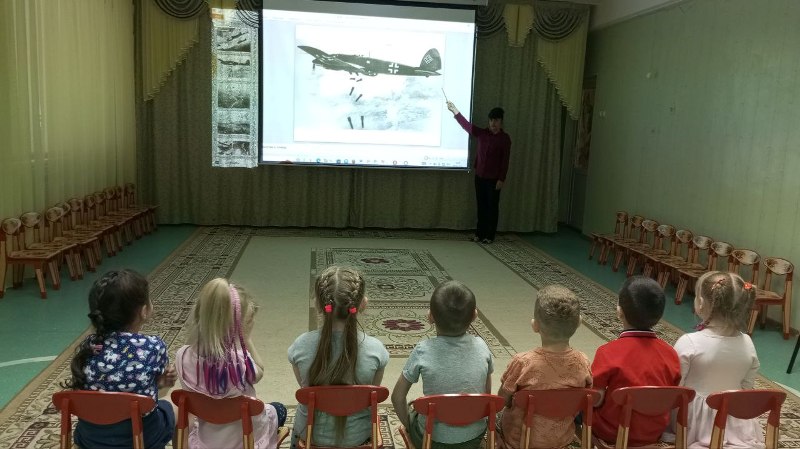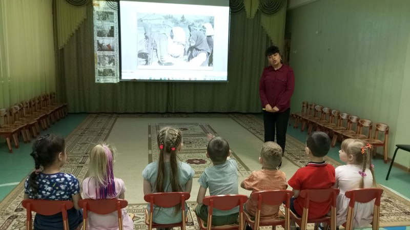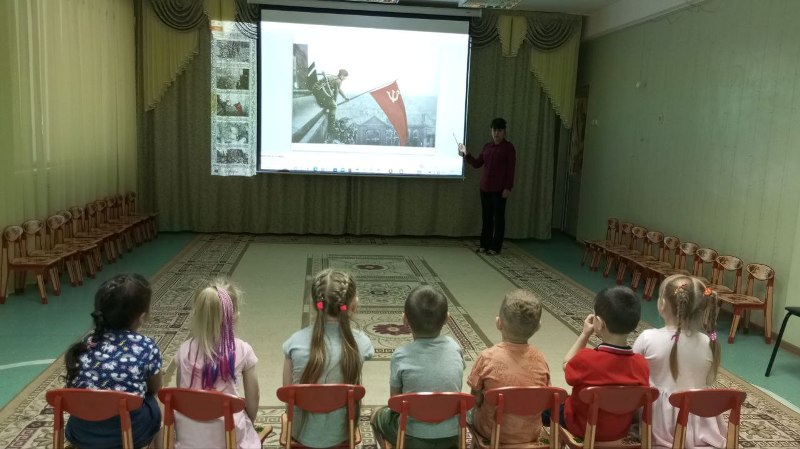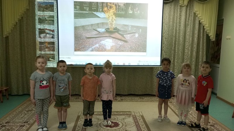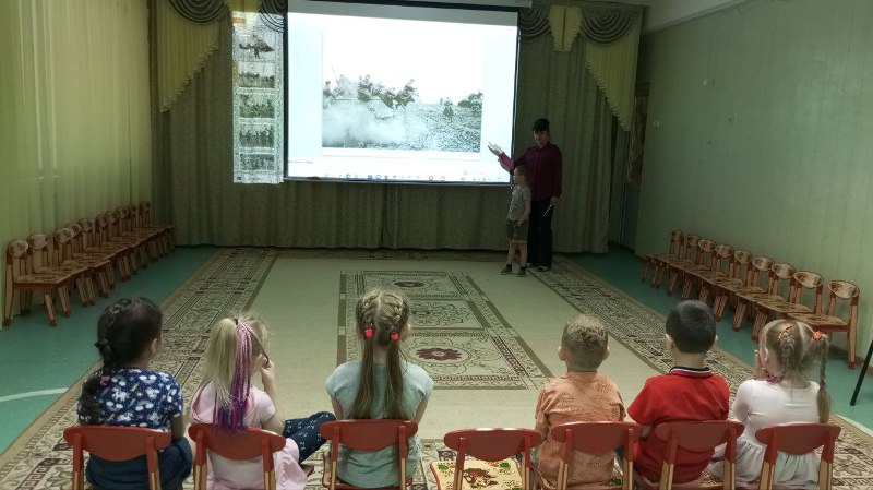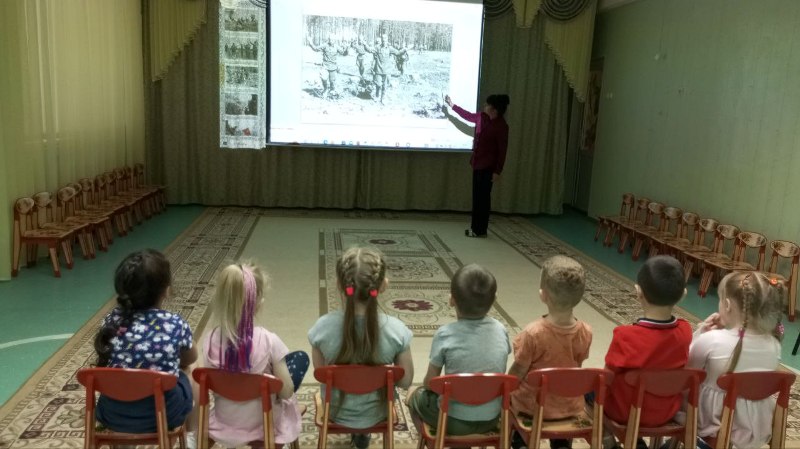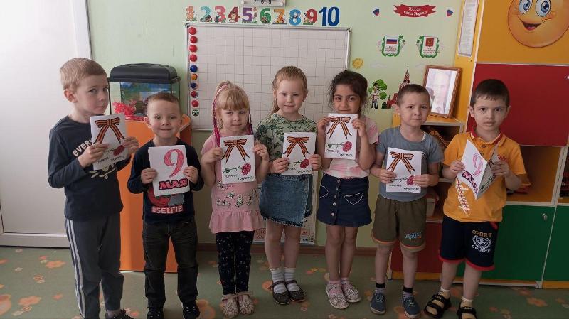 В старшей группе №2 нашего детского сада прошло тематическое мероприятие, посвящённое Дню Великой Победы - 9 мая. Дошкольники с большим интересом посмотрели презентацию «Великая Отечественная Война 1941-1945 г.», из которой узнали о суровых военных годах, о ге-роическом прошлом нашей Родины. Так же с воспитанниками была про-ведена познавательная беседа: «Герои Отечества». Дети много узнали о мужестве и подвигах наших солдат и минутой молчания почтили память героев, защищавших наше Отечество. В честь Дня Победы ребята нарисо-вали праздничные открытки.