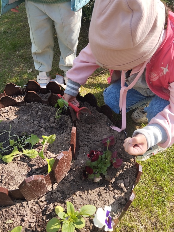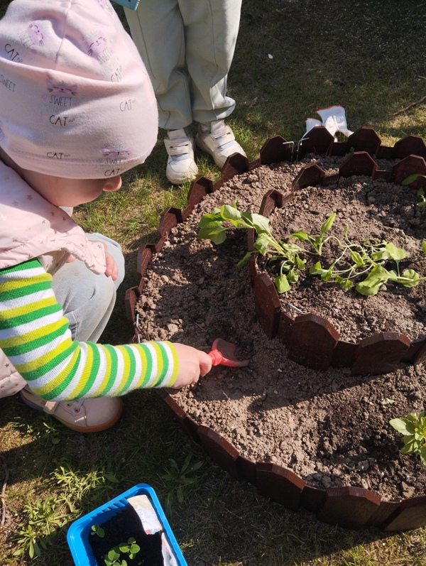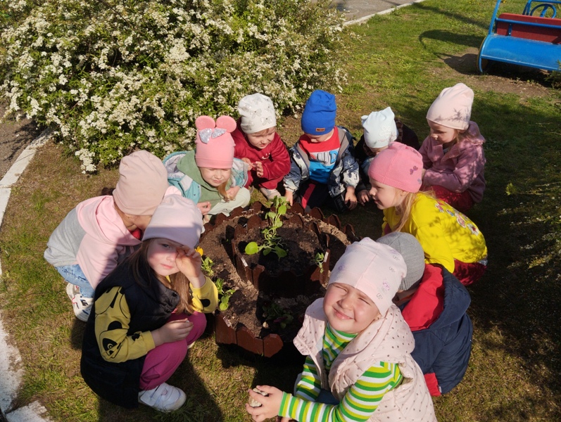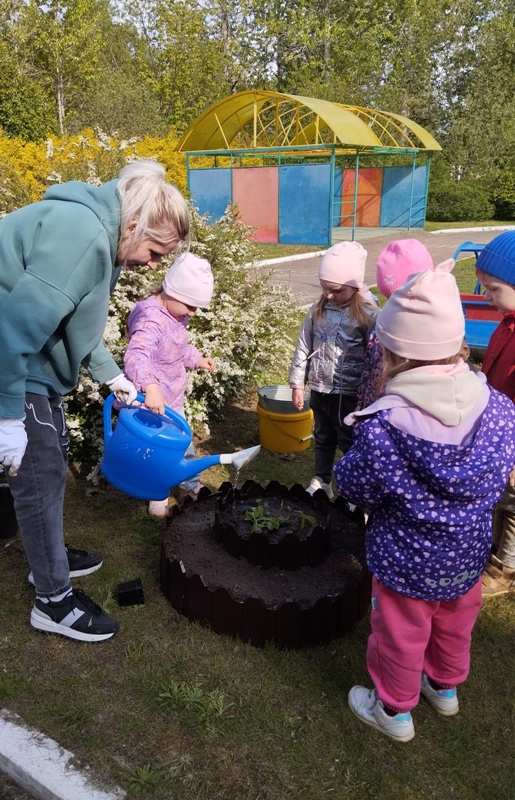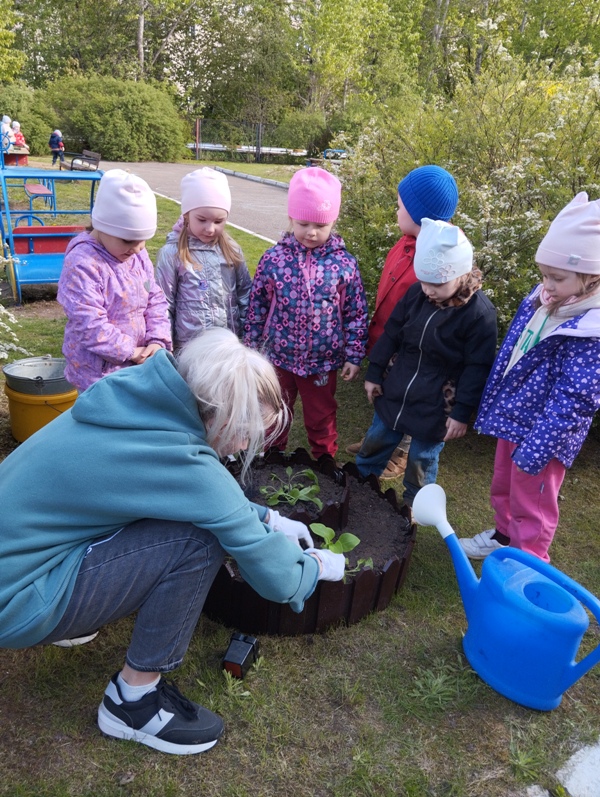 16 мая воспитанники 2 младшей группы вместе с воспитателем Григорьевой Ю.Ю. высаживали цветы на мини-клумбу. Юлия Юрьевна обратила внимание детей на то, что перед посадкой, необходимо удалить из земли сорняки, показала, как нужно осторожно брать росточки, чтобы не сломать их. Педагог рассказала о том, что растения высаживаются в небольшую ямку, присыпаются землёй, затем их обязательно нужно полить водой. Дети с интересом следили за работой воспитателя и конечно помогали. Во время наблюдения и беседы малыши узнали, как нужно беречь растения - не мять, не рвать их без надобности; о том, как ухаживать за растениями на клумбе, чтобы они цвели и радовали детей и взрослых всё лето и о том, чем полезны цветы для насекомых: пчёл и бабочек.