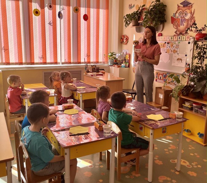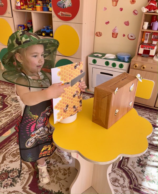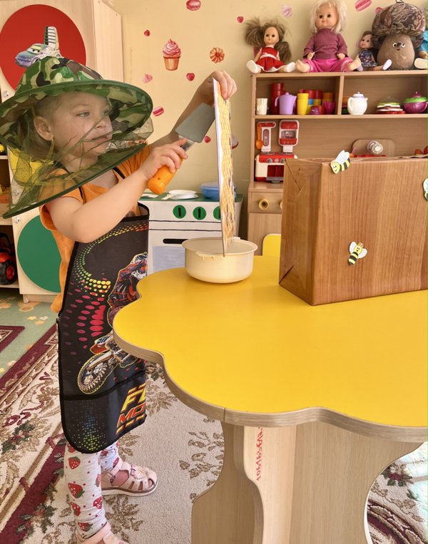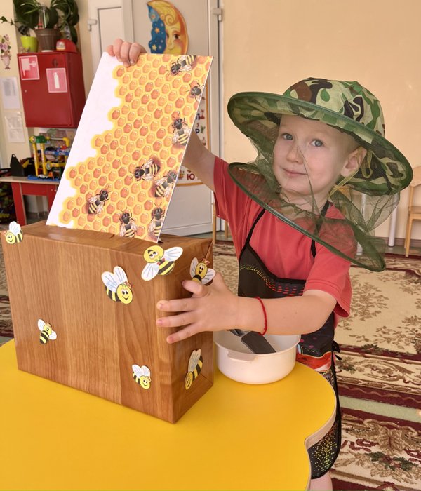 В средней группе №3 прошло тематическое занятие, посвященное международному празднику "День Пчёл". В гостях у ребят побывал медвежонок Федя, который рассказал о любимом лакомстве – мёде. В ходе беседы ребята узнали много интересного о пчелах: как они рождаются, где живут, как называется их домик, познакомились с их строением. Узнали, что пчёлы веселые и трудолюбивые насекомые, которые приносят пользу человеку уже многие тысячи лет. Самым интересным для ребят было собирать мёд, побывав в роли пчеловода. Воспитанники поиграли в подвижную игру "Весёлые пчёлки". А в заключении самостоятельно изобразили пчелу. Занятие доставило ребятам огромное удовольствие и много впечатлений.