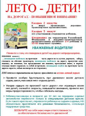 Безопасность дорожного движения в летний период