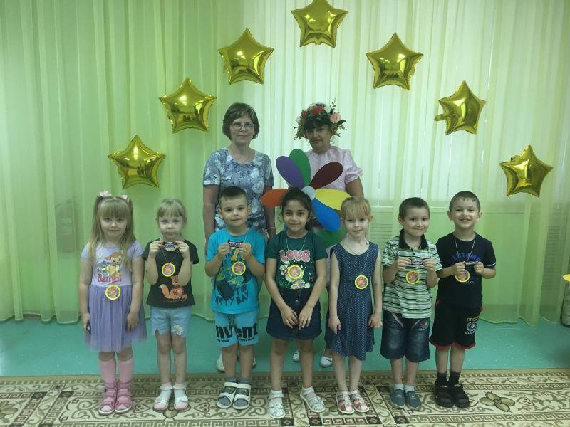 В конце занятия ребята увидели, какой чудесный «Цветик-семицветик» у них получился. Результатом были довольны все: и взрослые, и особенно, дети. В знак благодарности «Фея цветов» наградила дошкольников медалями и угостила конфетами.