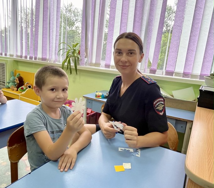 Ребятам было предложено заняться творчеством — сделать ромашку из специальной световозвращающей бумаги в подарок своим родителям, но перед началом мастер - класса ребята вместе с инспектором Госавтоинспекции повторили как важно всегда соблюдать Правила дорожного движения, идя в детский сад, гуляя по улице или катаясь на велосипеде.