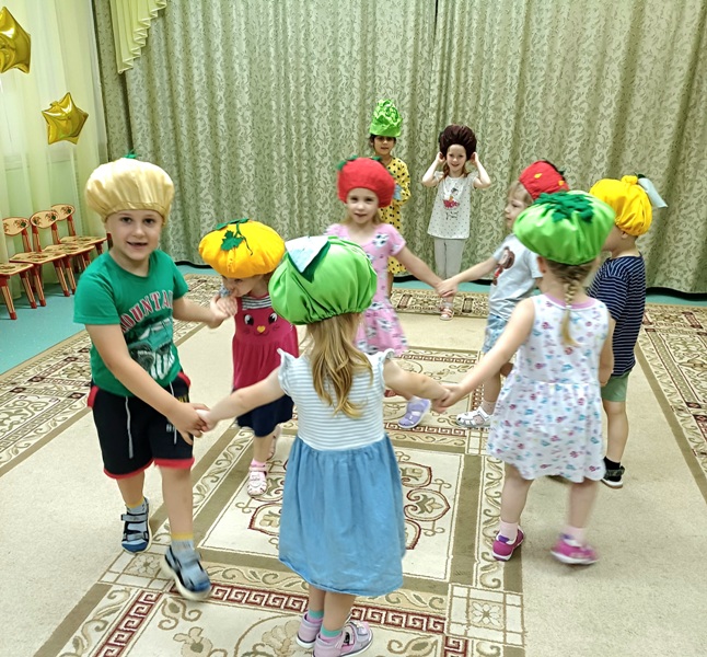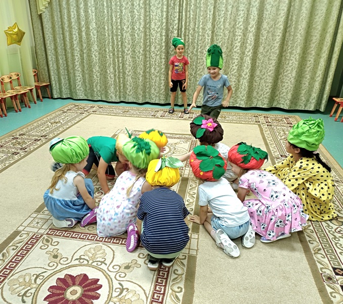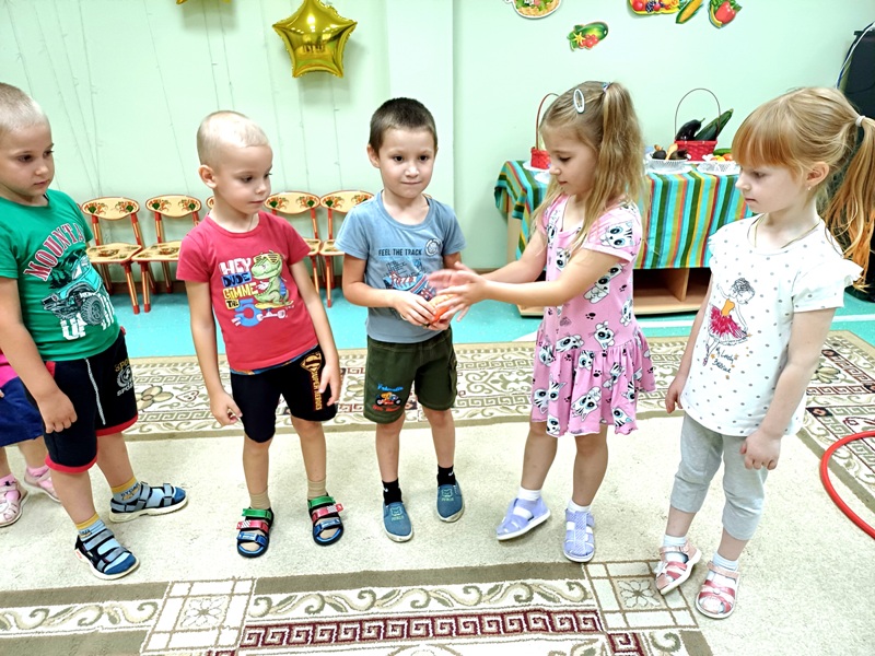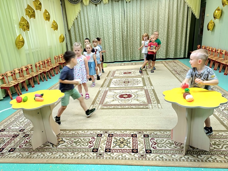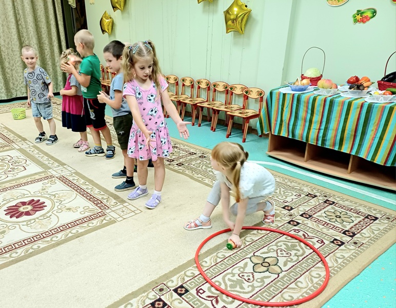 Затем воспитанники с азартом поиграли в подвижные игры "Чего не стало", "Огородный хоровод", посоревновались в эстафете "Собери урожай", а в финальной части мероприятия полакомились вкусными наливными яблоками.