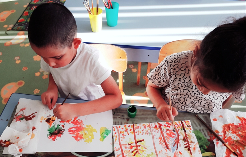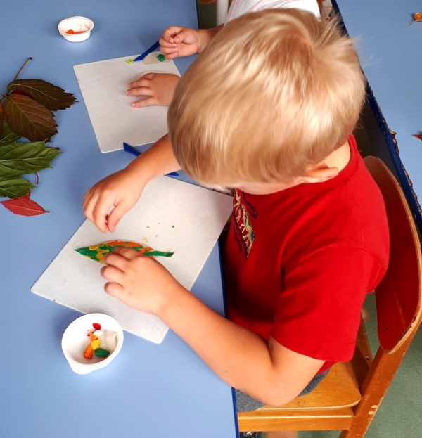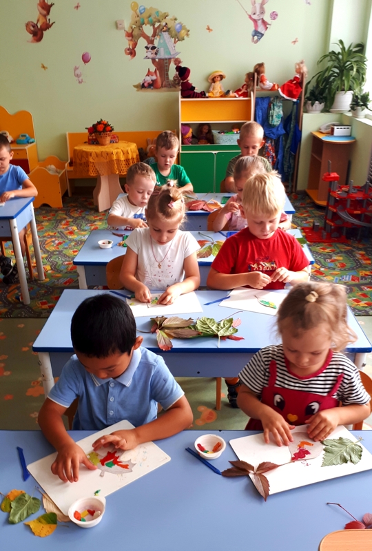 Превратились воспитанники и в пейзажистов. Изобразили осенние деревья необычным способом — оттиском окрашенных настоящих листьев деревьев. Ребята с неподдельным интересом и удовольствием лепили и рисовали. Получились великолепные детские шедевры.