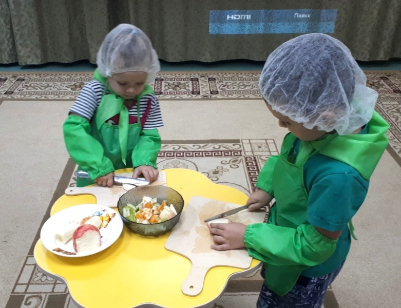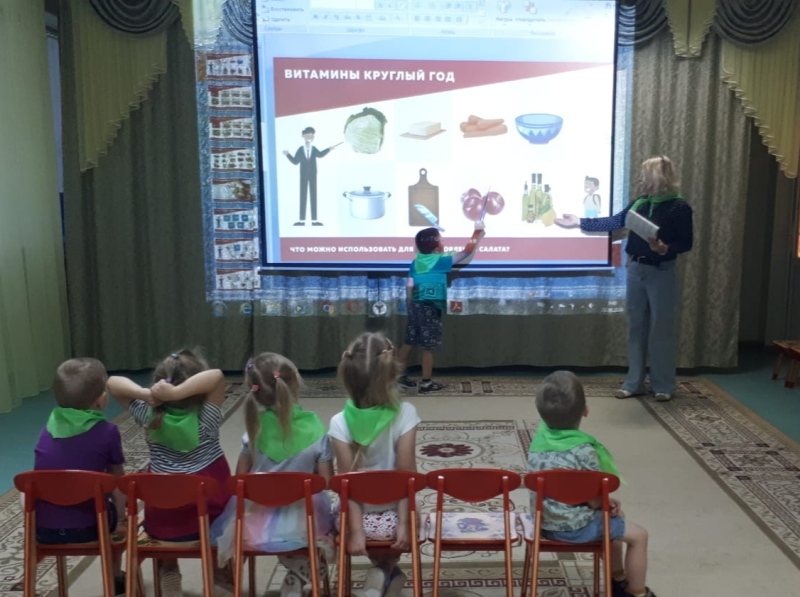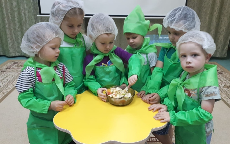 19 сентября в старшей группе №3 прошёл Всероссийский урок «Эколята – молодые защитники природы» на тему: «Здоровая еда. Кулинарный мастер – класс». В ходе занятия ребята посмотрели видеоролик о здоровой еде, узнали как надо питаться, закрепили знания о пользе овощей и фруктов, познакомились с основными приёмами и правилами приготовления салатов, отгадывали загадки и играли в дидактические игры. В итоге мероприятия, дети вместе с педагогом Кирюшкиной Ириной Дмитриевной приготовили салат «Витаминка».